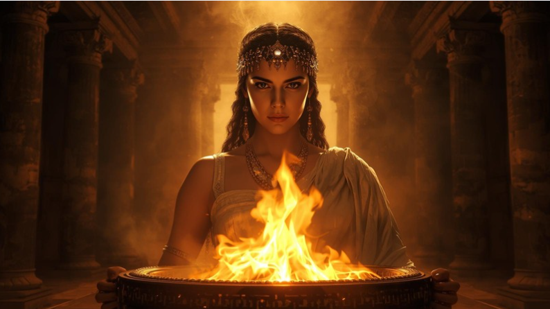 She had something more important — the flame that made the throne room possible. Every god and goddess on Olympus poured the first and last libation to Hestia before any other deity. Not Zeus. Hestia. Because without the hearth nothing else functions.