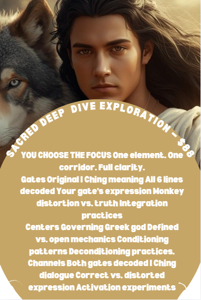 - Tell me what you want to explore (gate, center, channel, Chiron, Lilith, or line theme)