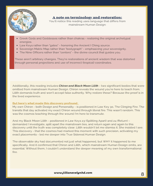 ✔ Daily Experiments: Specific practices designed for YOUR mechanics—not generic advice, but experiments tailored to your Type, Authority, Profile, and open centers